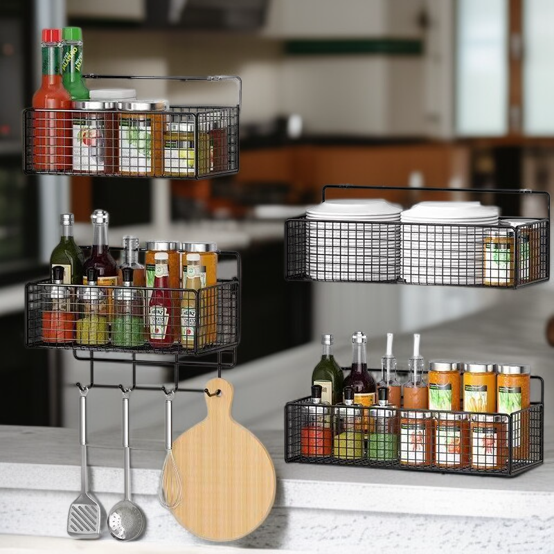 رفوف تخزين المطبخ، رفوف تصريف مثبتة على الحائط للبصل الأخضر والزنجبيل والثوم؛ سلال خضراوات مثبتة على الحائط؛ سلال تخزين؛ أجهزة تخزين التوابل.